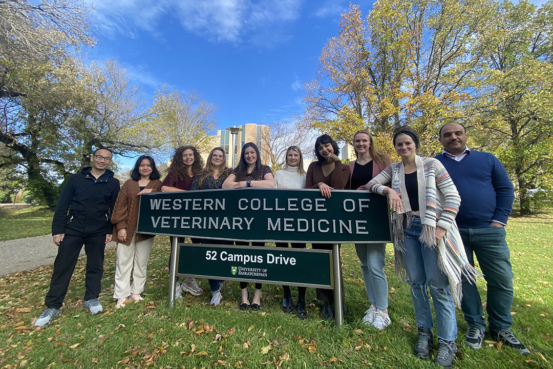 Dr. Yolande Seddon (fifth from left) and members of the swine welfare research team based at the WCVM. Supplied photo.
